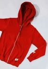 Campera confeccionada en algodón rústico sin frisa, estilo canguro con bolsillo y capucha.